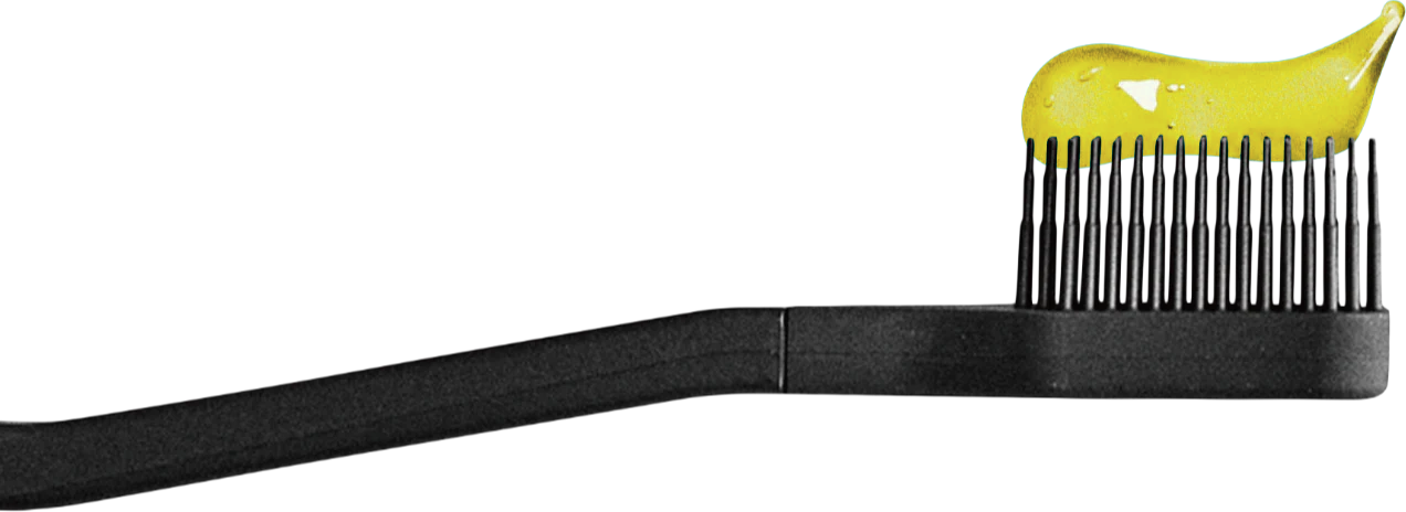 歯磨き粉を絞り出した歯ブラシの上に